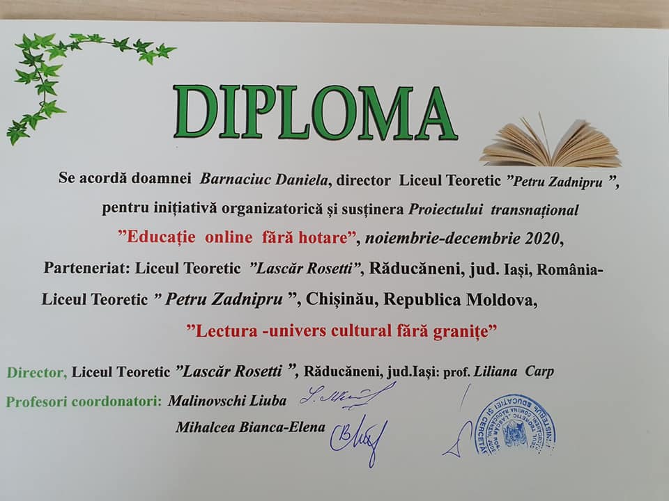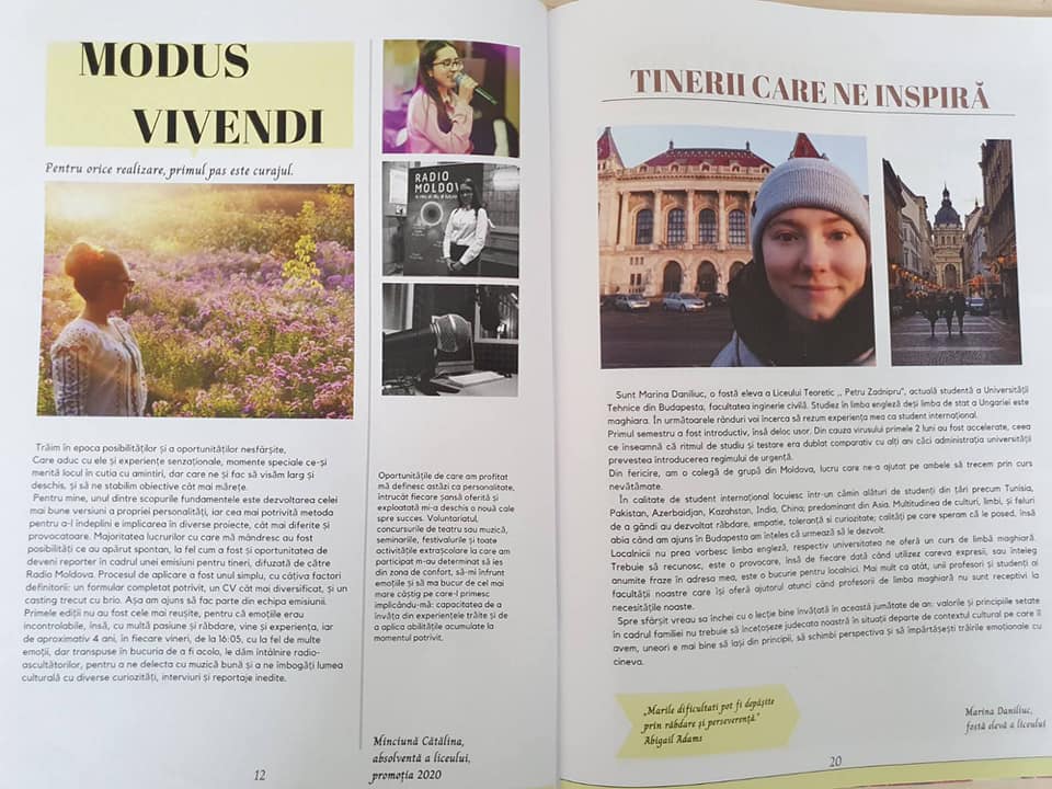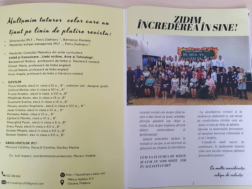 Coordonator profesor de limba și literatura română dna Moraru Violeta. Revista a însumat mai multe proiecte naționale și internaționale, având drept obiectiv cultivarea deprinderii de cunoaștere, cercetare și implicare, a oferit posibilitatea adolescenților să-și pună în valoare potențialul creator.