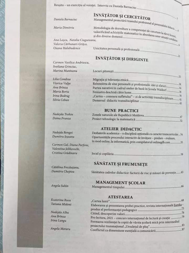 Învățătorul Modern Felicitări, dna Barnaciuc Daniela! ,,Mulțumesc pentru oportunitatea de a colabora cu echipa minunată a revistei “Învățătorul Modern” , în special dnei Mariana Marin! „(Daniela Barnaciuc)