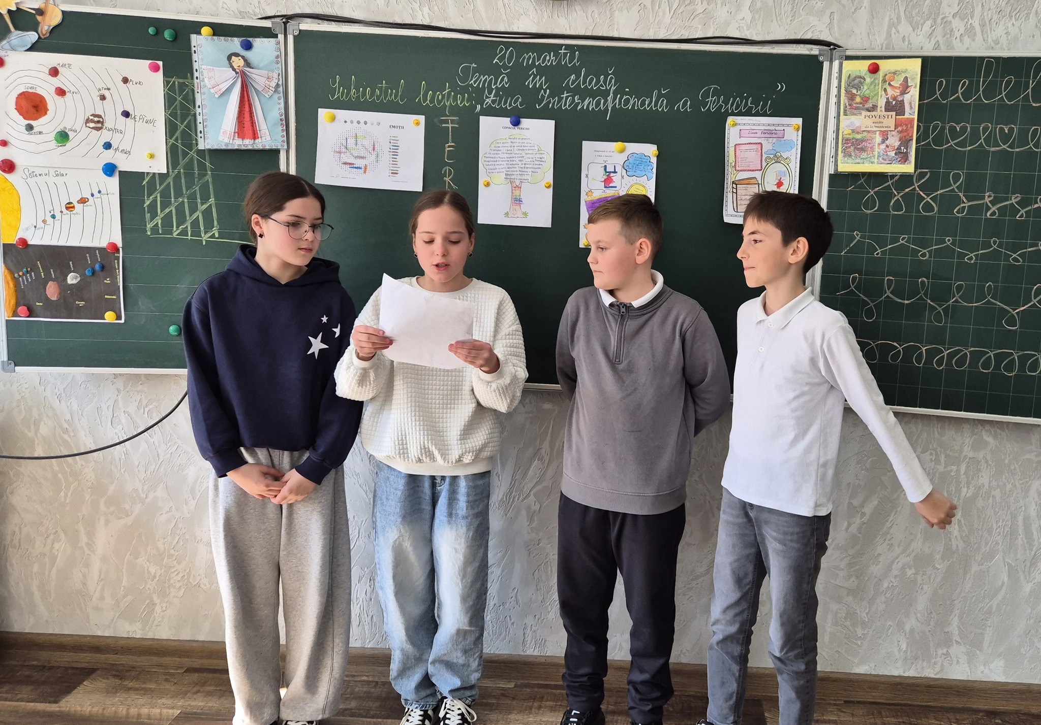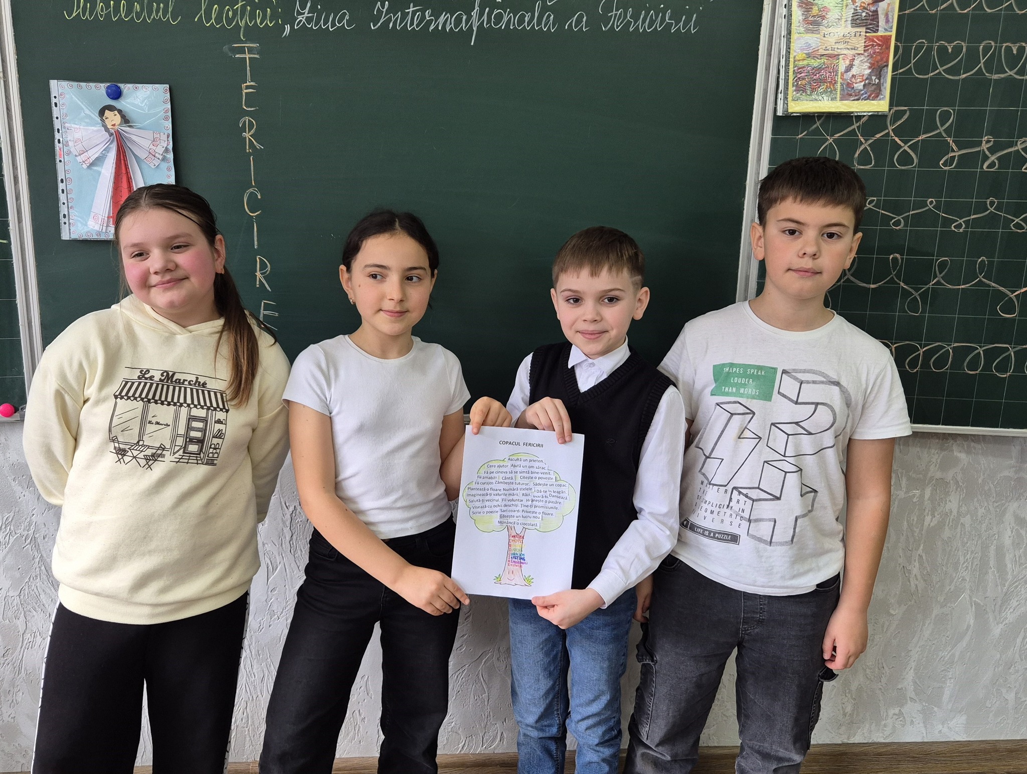 📌 La IPLT „Petru Zadnipru” a fost marcată Ziua Internațională a Fericirii (20 martie) printr-o activitate educativă desfășurată alături de elevii clasei a IV-a „A”, învățătoare Bodiu Ina.